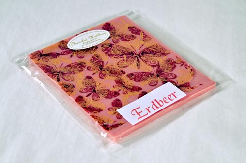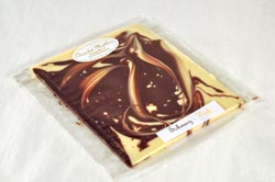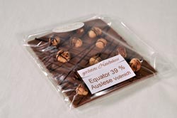 Die zwischen 60 und 100 g wiegenden Tafeln werden veredelt mit Haselnüssen, Mandelstiften, Ingwerstücken und vielem mehr.